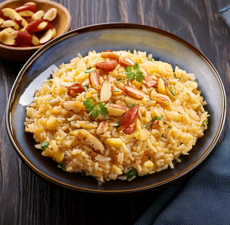 Cuscuz marroquino com amêndoas laminadas e damascos picados.